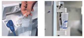 聯機B干粉與透析機的連接(左為聯機干粉袋,右為聯機干粉桶)[2]