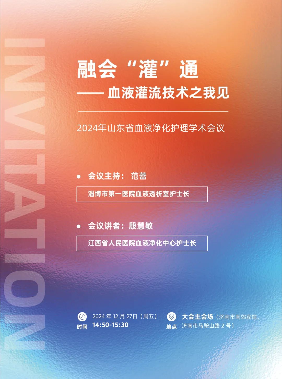 2024年12月27日(周五)下午14:50-15:30在會議主會場,將為大家?guī)?strong style="box-sizing: border-box;">《融會“灌”通——血液灌流技術之我見》的專題報告。此次報告的主講人是江西省人民醫(yī)院血液凈化中心殷慧敏護士長,并由淄博市第一醫(yī)院血液透析室范蕾護士長主持。