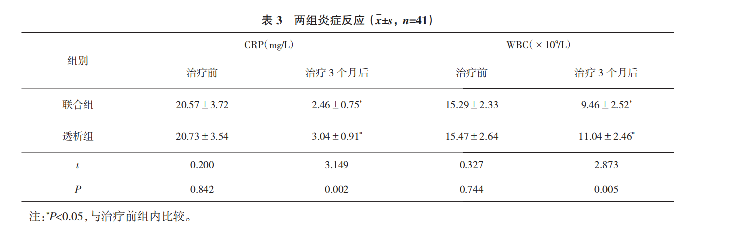對于微炎癥狀態患者,應用血液透析聯合血液灌流治療可以降低炎癥反應,促進其腎功能恢復,提高臨床療效,從而減少并發癥的發生。