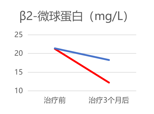 尿毒癥患者因腎衰竭,體內(nèi)蓄積大量中大分子毒素(如β2-微球蛋白、甲狀旁腺激素等),這些毒素可破壞紅細(xì)胞、抑制骨髓造血功能。血液灌流可有效清除這些毒素,減少對(duì)紅細(xì)胞和造血系統(tǒng)的毒性作用,改善貧血。(下圖 — :HD ; — :HD+HP)