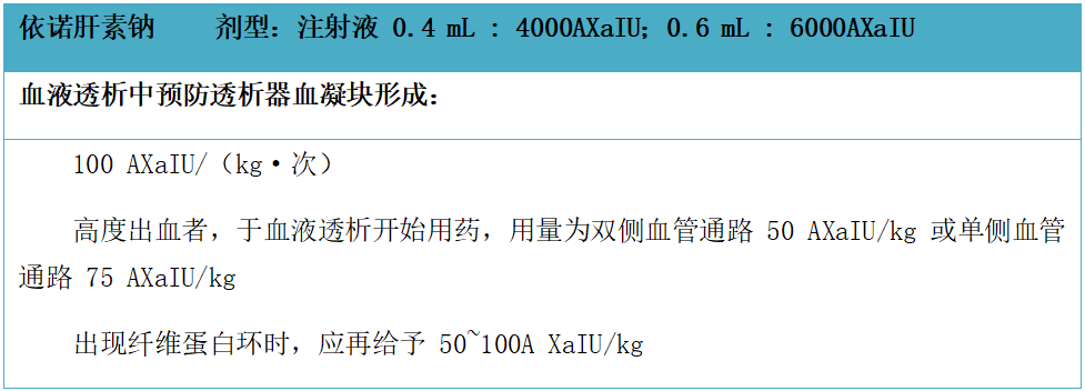 不同的肝素藥物之間因制備工藝、分子量、抗 Xa/IIa 效價不同導致其適應證、臨床療效等方面均存在差異。因此,不同的低分子肝素之間不能以單位換算的方式交替使用,以避免增加出血、血栓風險。每種藥物必須按其各自說明書,根據患者情況及個體差異進行使用,以確保血液凈化治療的安全性。